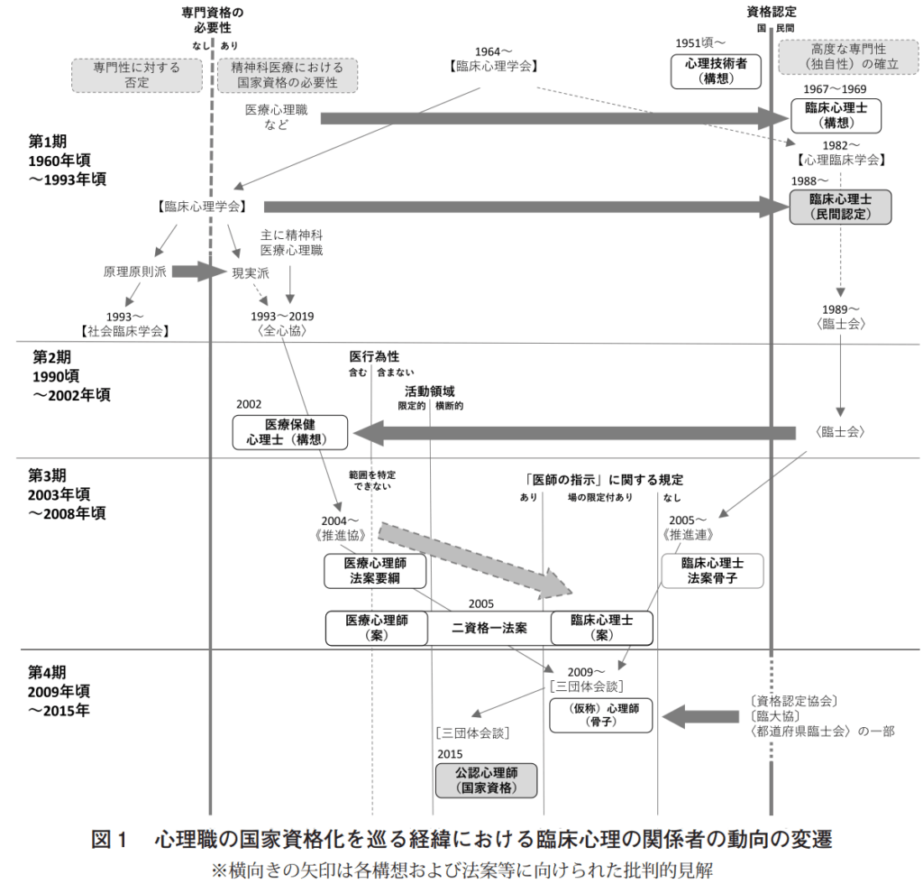 岩田光宏 2023 心理職の国家資格化を巡る経緯から見る公認心理師制度の社会的意義:「臨床心理学的社会制度論」の必要性 Human sciences : 大阪人間科学大学紀要 ,22; 84-96.